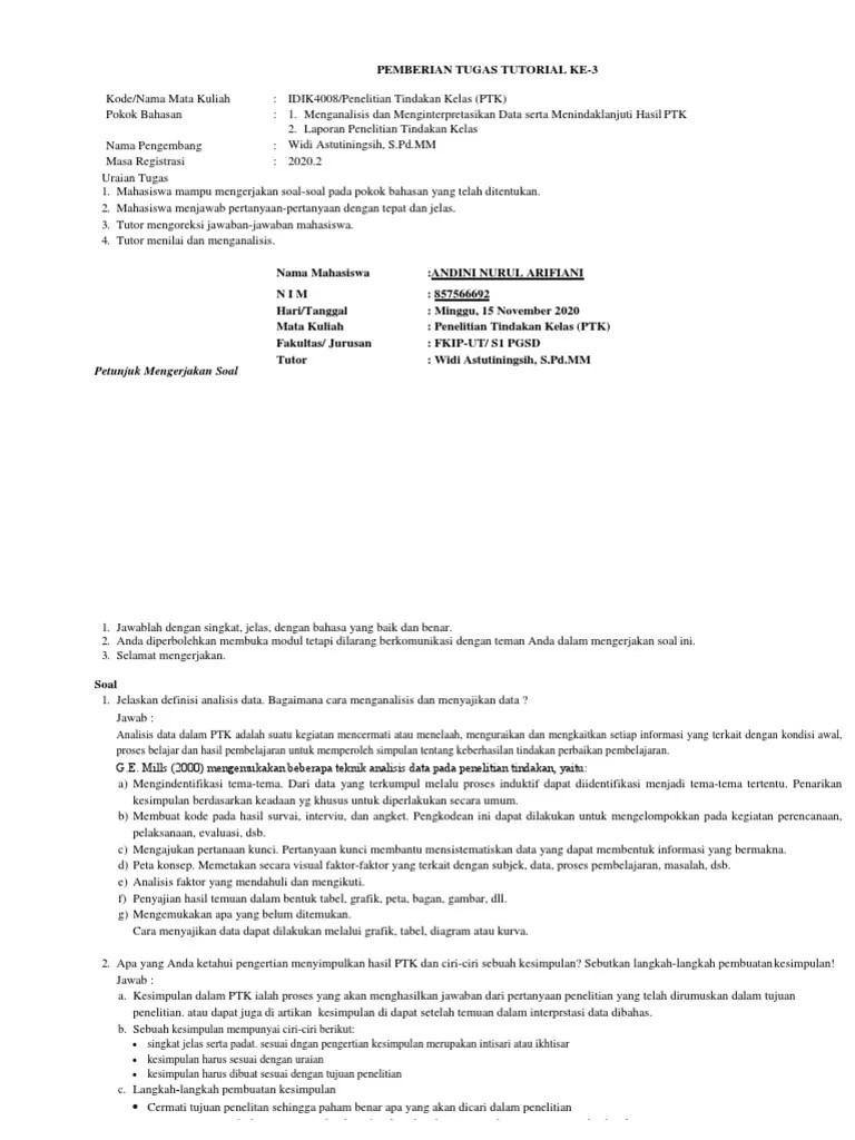 Soal Ujian Penelitian Tindakan Kelas Kode Idik 4008 / Tugas 2 Mata Kuliah Penelitian Tindakan Kelas Kode Mata Kuliah Idik 4008 Nama Tutor Burhan M Pd Pdf - Cari soal ujian ut pgsd idik4008 penelitian tindakan kelas lengkap dengan kunci jawaban dan pembahasan soal judu.